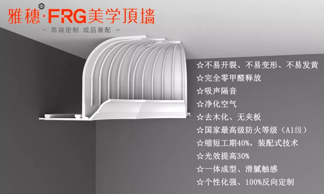 广东雅穗集成家居科技有限公司成立于2014年,首创FRG环保材料,是集FRG成品装配式吊顶、3D艺术背景墙、艺术灯饰等研发、生产、营销与安装服务等为一体的专业顶墙集成家居企业。雅穗FRG美学顶墙,纯天然(健康)、零缝隙(耐用)、易造型(美观),并有效结合原创设计+工厂定制+成品装配式的优点,既解决了高端客户的个性需求,又帮助了装饰公司高雅艺术设计方案无法落地的难题,从设计创意、产品质量、安装快捷等方面重新定义了豪宅美顶,赋能定制精装。